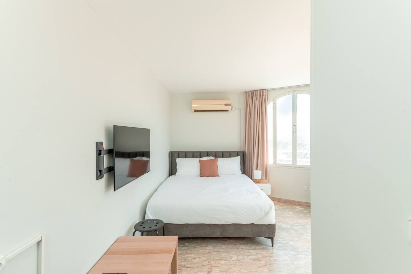 → Privater Eingang → 12 Minuten zu Fuß zum nächsten Strand → 12 Minuten zu Fuß zum beliebten Azrieli Mall Hayam → 5 Minuten zu Fuß zum Supermarkt → Kostenpflichtige Parkplätze für 27 NIS pro Tag verfügbar. → Schutzraum im Notfall vorhanden